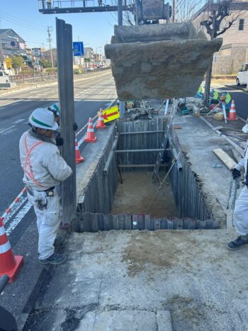 掘削が終わったら水抜きを設置して生コンを打ちます